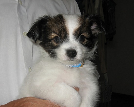 | 生まれて二月足らずの頃の康太です 初めて首輪をつけた時の写真です |