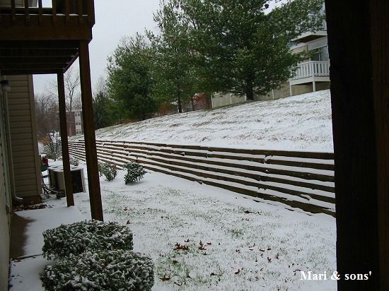 部屋の裏側に積もった雪です 降雪はこの程度です