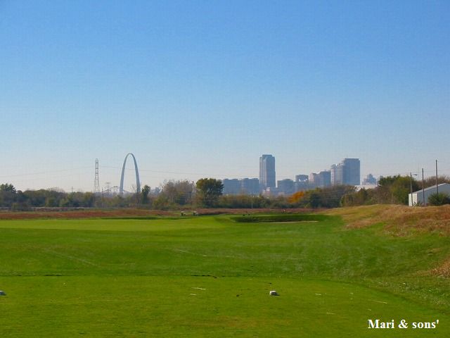 これは イリノイ側にあるゴルフ場から見たセントルイスです 55号線で入ってくるとこんな感じで目に入ってきます |