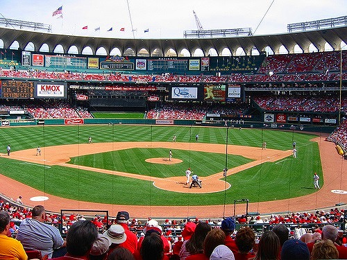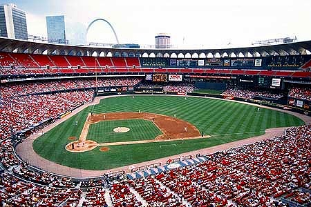 少し 左に首を振って カージナルスの根拠地 ブッシュスタジアムです |