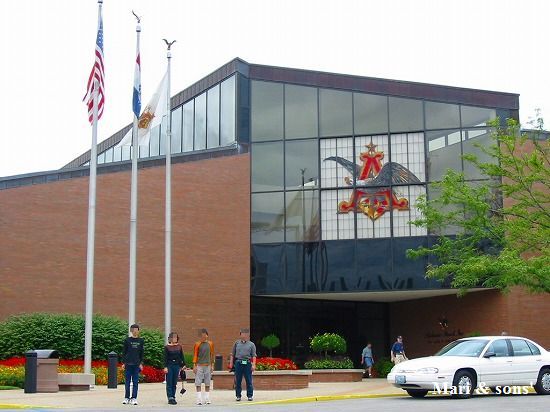 バドワイザーの本社・工場の玄関です セントルイスのシンボル ゲートウェイ・アーチから南に車で5分ほど下った所に広大な敷地を構えています |