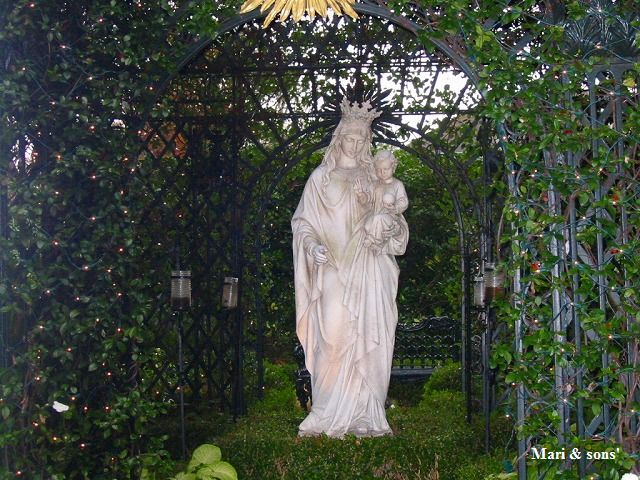 敷地には思い思いの花や 飾り物が |