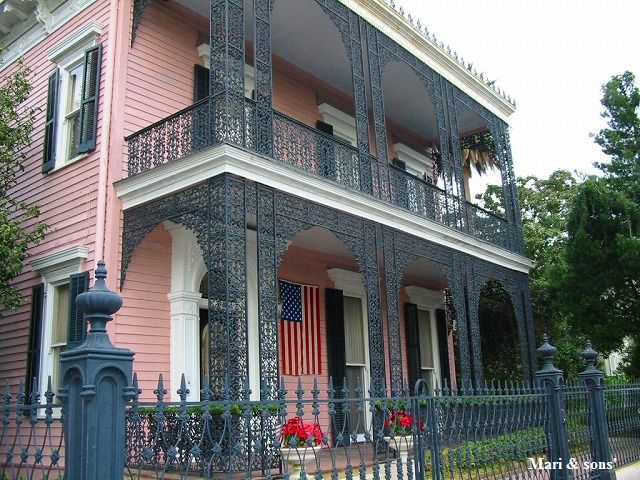 町並みの鉄柵が レース状になっているのがこの辺りの特徴です |