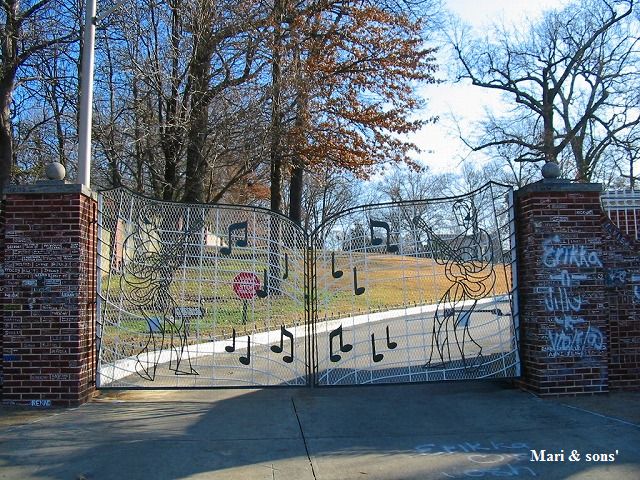 邸宅は 今では周りに家が立て込んでいましたが ここの敷地内に彼は眠っているのです 残念ながら 敷地内では撮影が禁止されていますので いずれも外からの写真になります 門と奥に広がる敷地内の建物です |