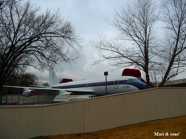 実はプライベート飛行機も置いてあるのです 飛行機嫌いで日本に来なかったのはそのせいだ と聞いていたので少し不思議な感じでした |