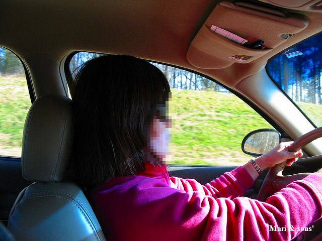 お母さん 運転に慣れるためにハンドルを取ります |