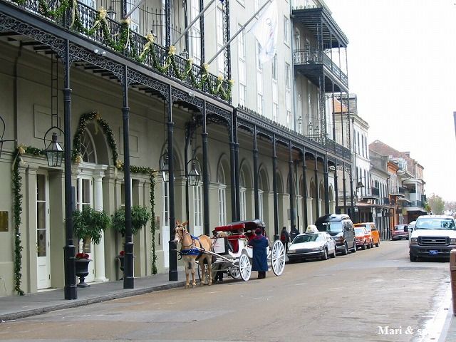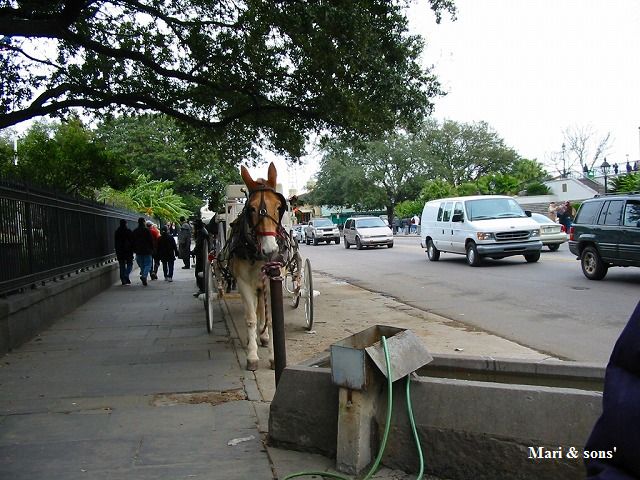 テラスのある街並み それに 馬車と御者 と言うのは いかにも南部ですね これを求めて観光客がやってくるのです |