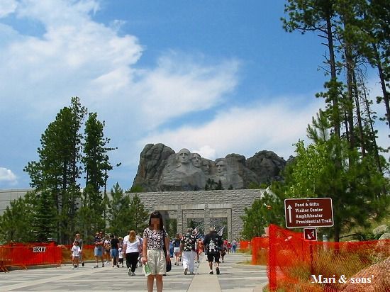 そこを抜けるとまた公園のようになっていましたが更に進むと 着きました! マウント・ラシュモア・ナショナル・モニュメントです