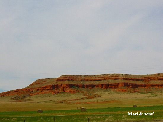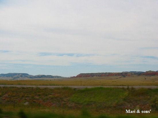 さて 見学の後はお隣の州ワイオミングのデビルズタワーを目指します I-90を更に西へ向かいますが 途中の沿道の風景はこんなものでした |