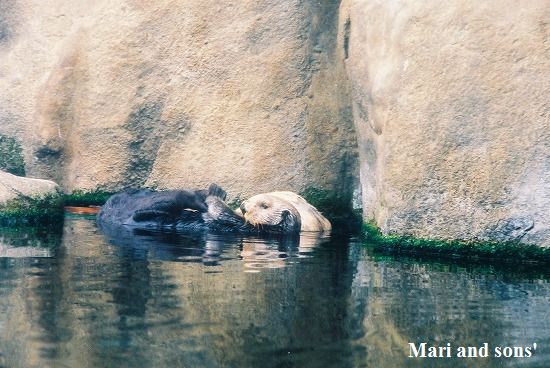 水族館のラッコです 親子でしょうか |