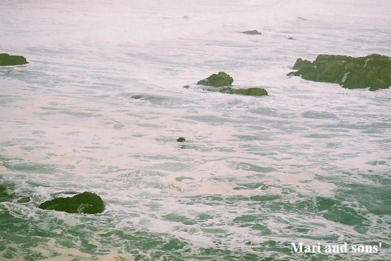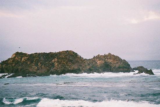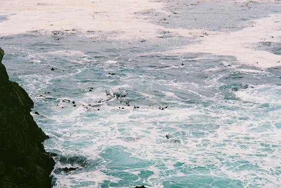 途中で止まってくれた荒波打ち寄せる岩場では 野生のラッコを遠目ながら見ることができました |