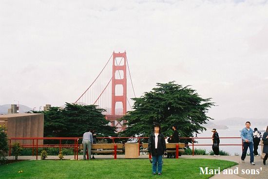 戻ってから シスコで忘れてはいけない ゴールデンゲートブリッジを見学にでかけました 私達も はいッ チーズ! |