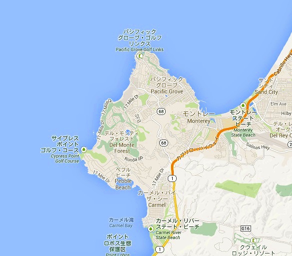 サンフランシスコからモントレーへ 下はモントレー近辺の拡大図です |