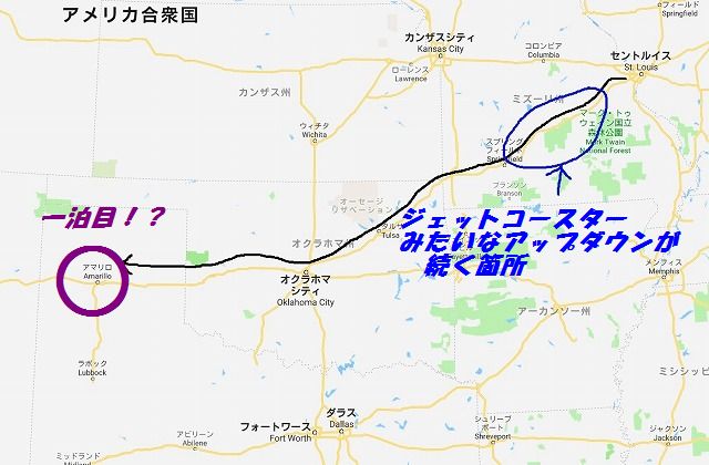 まずはセントルイスから アップダウンの多い I-44で南西に下り ミズリー州を斜めに横切りオクラホマに入ります さすがにこの辺りに来ると日没ですから やむなく宿を取ります