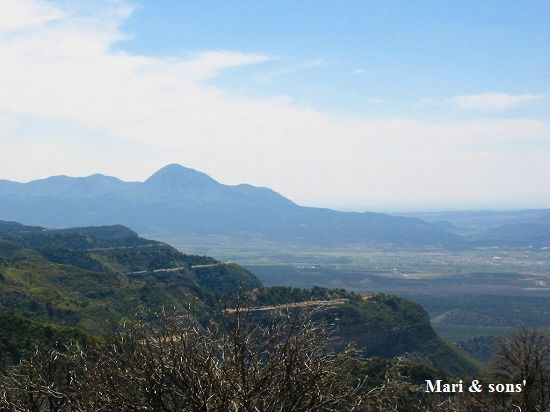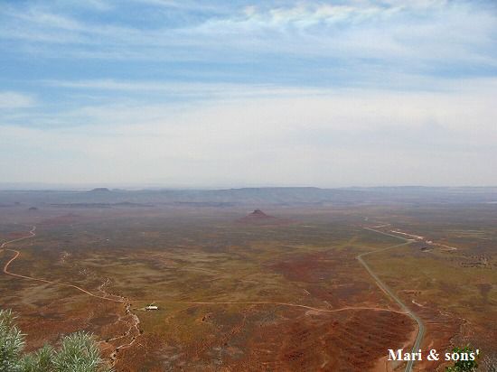 乾燥地帯の向こうには山並みが それも 平たい台地です |