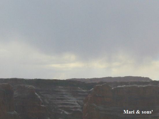 雨雲と岩肌を白く染める雨水です |