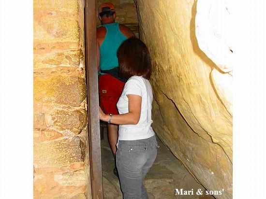 右奥に見える四角い穴 これが外に通じる穴なのです 戻りの道も結構険しいものです |