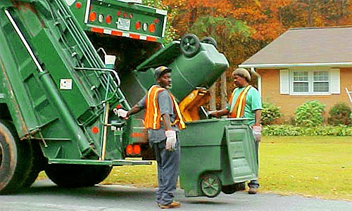 これは 一般家庭のゴミ回収の様子ですね 下の写真も借りてきたものですが 大きなゴミトレイを抱えているところを見ると アパートでのやり方に近いのではないかと思えます |
