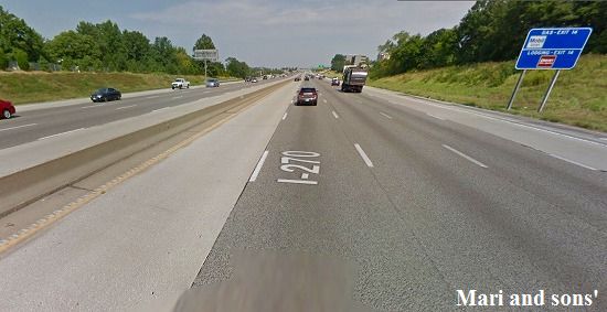 そして こちらが I−70の二番目のバイパス I−270の写真ですがここ辺りは都市部の交通量の多いところですから片側5車線になっています 初めて来たときにはその広さときれいさに驚いたものでした