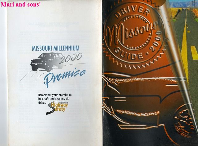 上のコピーがミズリー州の2000年度の交通教則本で 表表紙と裏表紙になります 大きさはアメリカのペーパーバック本よりチョット大きいかな? それ程厚くはありません